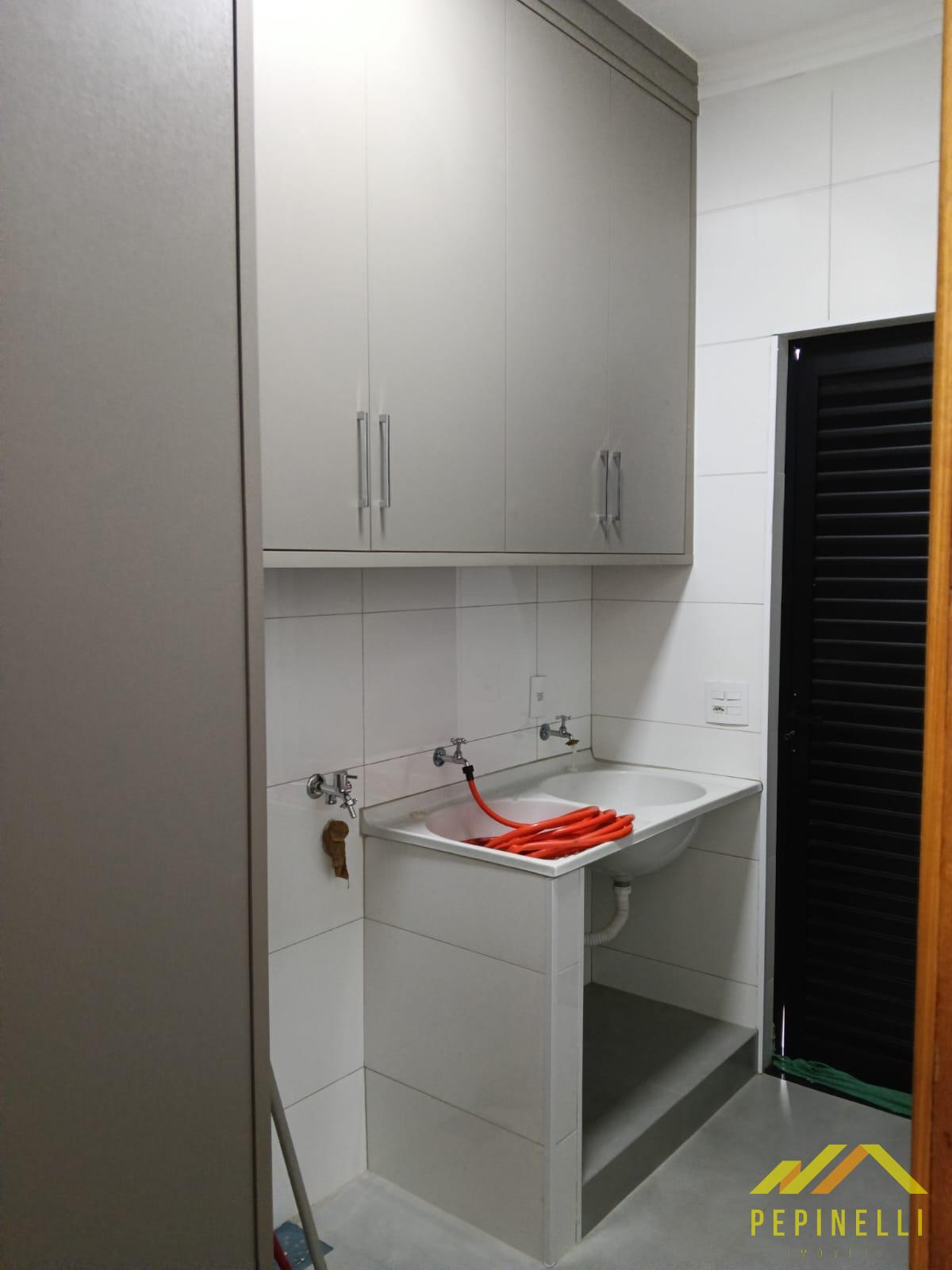 Lavanderia coberta com armário embutido